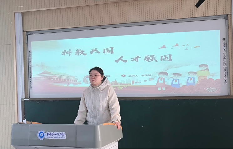 辅导员朱佳慧老师以“科教兴国,人才强国”为主题为全体学员开展党课第四讲。朱佳慧老师指出要实施科教兴国战略,强化现代化建设人才支撑。要办好人民满意的教育,完善科技创新体系,加快实施创新驱动发展战略,深入实施人才强国战略。
