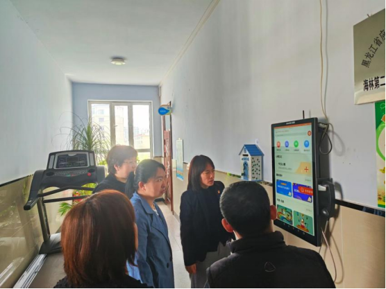 在海林市第二小学校长的带领下,李洋老师参观了海林市第二小学心理辅导教师以及心理设施,对学校心理健康教育环境进行了走访。