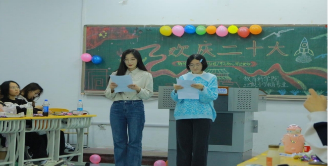 二十大的号角已经吹响,全国上下欢欣鼓舞,一片热烈呼声,青年作为党和国家事业的“接班人”,更要坚定信仰、坚守初心、奋力拼搏。为带领青年团员进一步学习二十大,鼓舞大家以最佳状态赴二十大“之约”,教育科学学院小学教育专业于2022年11月13日在综合楼719开展以“欢庆二十大 青春心向党”为主题的团日活动。