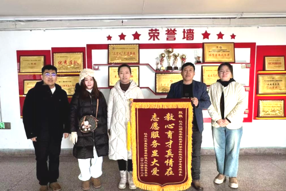 12月10日上午9时,文化社区党委书记魏海艳与党委副书记郭天娇一行,带着满载感激之情的锦旗,走进了学院。这面鲜红的锦旗上,“教心育才真情在,志愿服务显大爱”的字样熠熠生辉,不仅是对我院师生长期以来深入社区、无私奉献的高度认可,更是对我们双方合作共建、促进社区文化繁荣的美好见证。