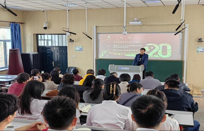 为深入学习宣传贯彻党的二十大精神,引领全体党员凝心聚力,把思想和行动统一到党的二十大精神上来,践行教育初心,坚定责任担当,提高党员思想觉悟,持续推动党的二十大精神深入人心,我院党委书记笙长军同志于3月29日进行了以“学习党的二十大会议精神”为主题的专题党课,全体党员参加此次党课。